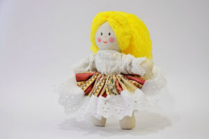 Autorská Látková panenka inspirovaná lidovým prostředím a folklórem, ručně malovaná, 27 cm, plněna dutým vláknem