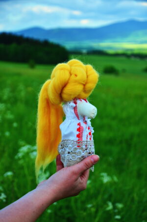 Autorská panenka má ručně malovaný obličej tenkým štětečkem