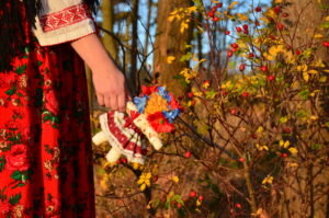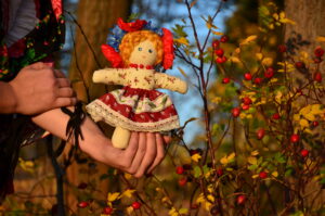 Autorská panenka inspirována slovanskými bájemi a dožínkovými slavnostmi, oslavou úrody, slunce a radosti
