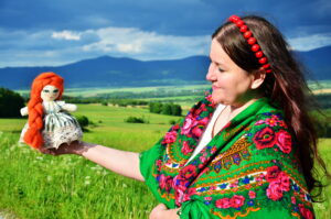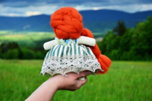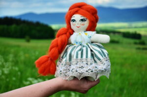 Autorská panenka z bavlněné látky plněna ovčí ručně mnou zpracovanou vlnou