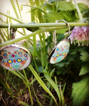 Autorská kresba na motivy českého folkloru ožívá ve třpytu náušniček.