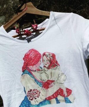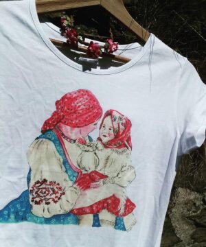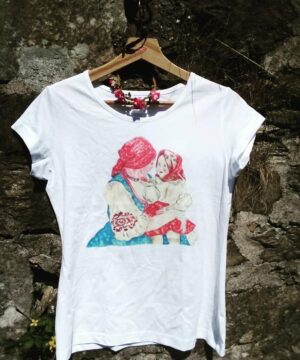 Bílé triko s autorským akvarelem přeneseným digitálním kvalitním tiskem.
